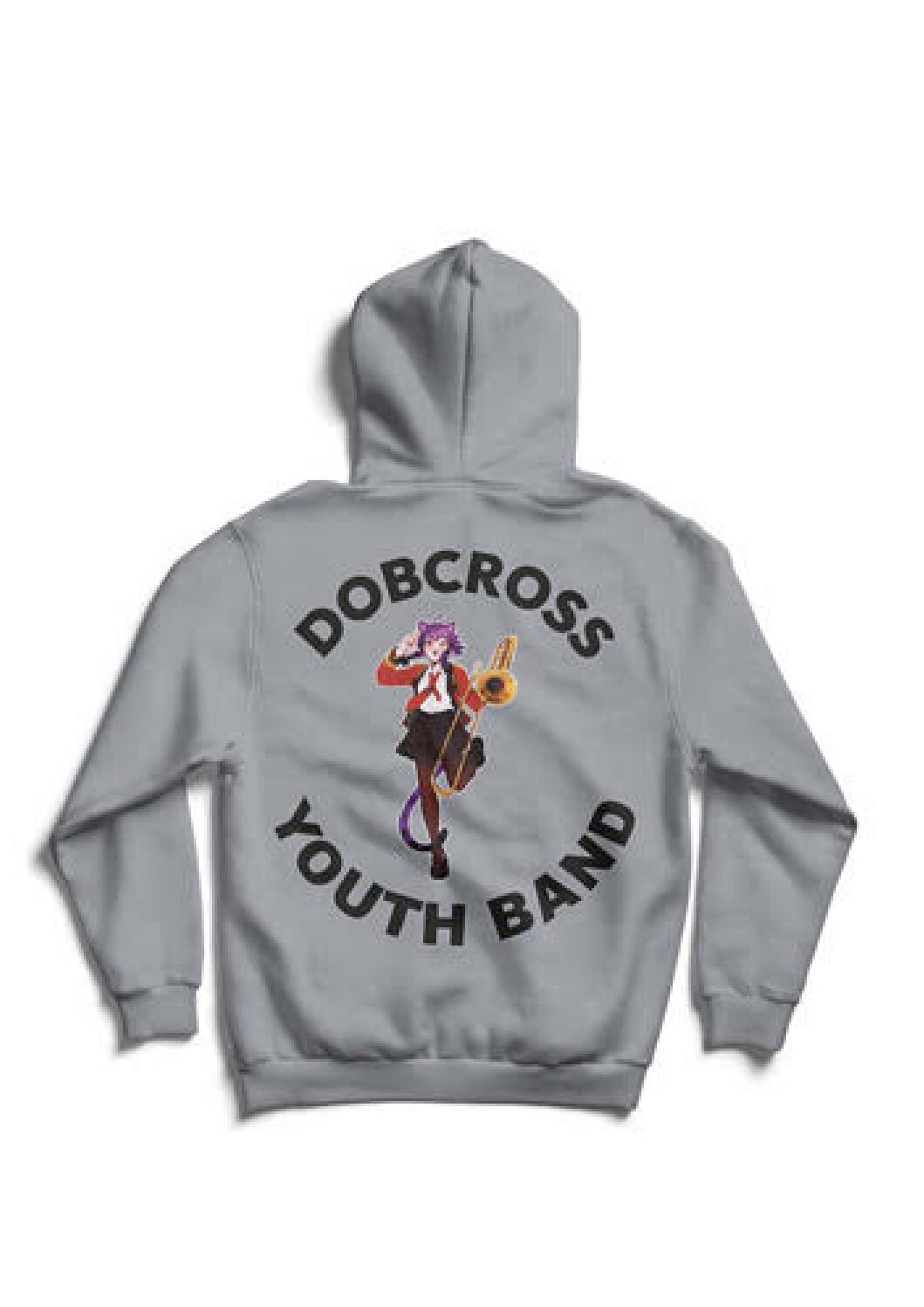 Super quality hoodies in Light grey With the Youth Band image on the back and ‘DYB’ on the front.